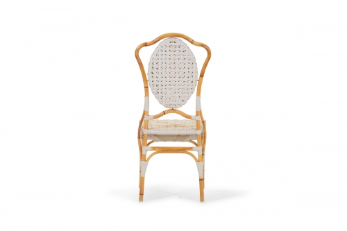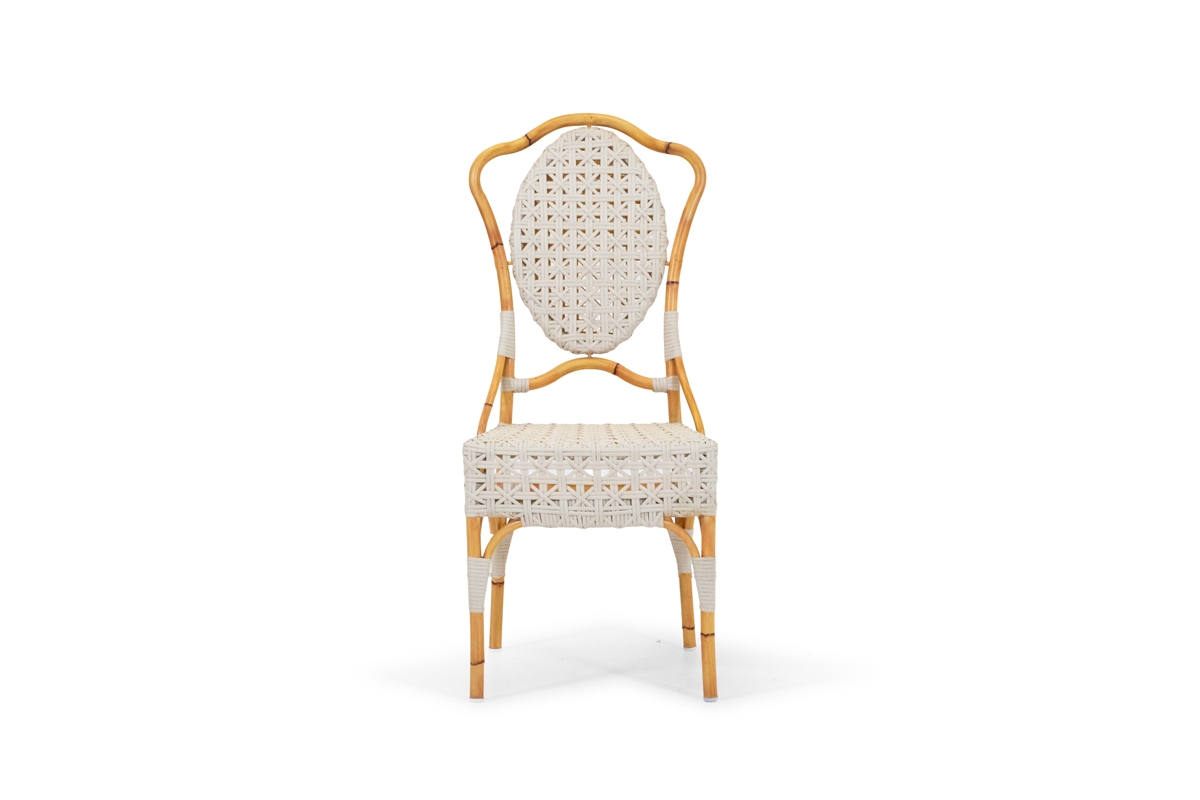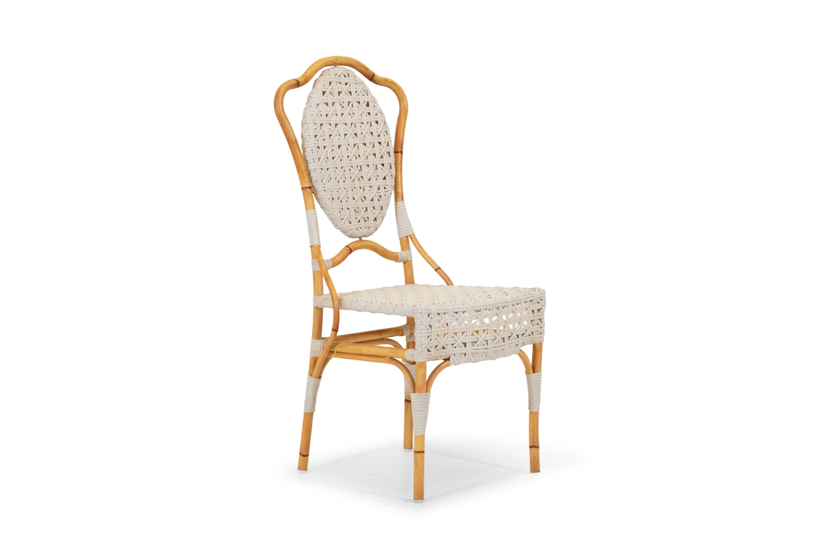 Un respiro d’aria e “arte nuova”. Questa collezione nasce per creare un'atmosfera raffinata, con le linee e i particolari che raccontano uno stile inconfondibile. Questa sedia parla di raffinatezza e robustezza grazie al telaio in alluminio resistente, l’intreccio in rattan sintetico e la finitura effetto natural cane, con quella tipica corteccia ed i caratteristici nodi.