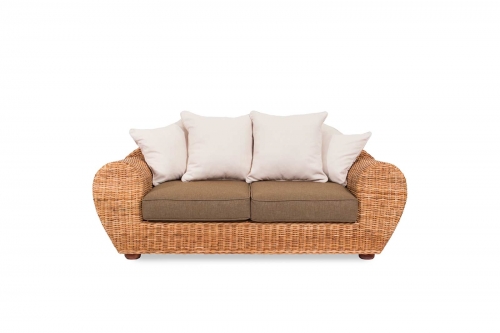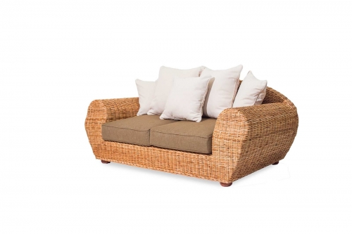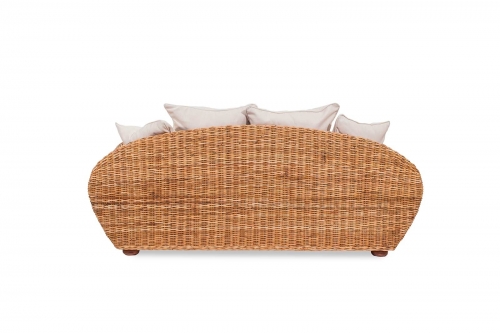 Divano con telaio in legno, intrecciato in croco o giunco naturale. Finitura trasparente opaca.