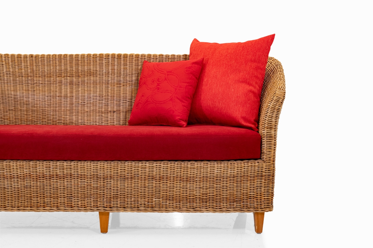 Divanetto con telaio in rattan, intrecciato in giunchino naturale,