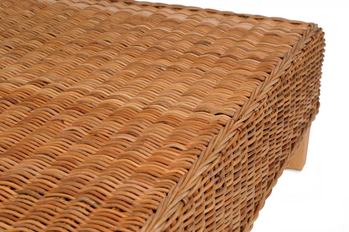 Il pouf in rattan Tiffany ha un telaio in legno, intrecciato in giunchino o midollino naturale da 3 mm con finitura trasparente opaca.