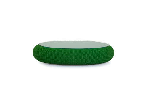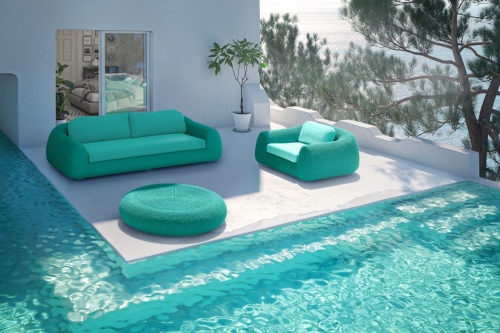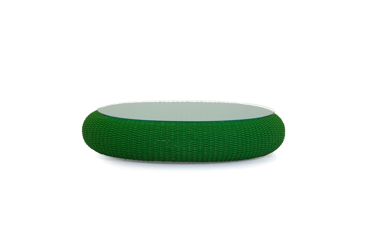La linea MANDARIN ha un telaio in alluminio ricoperto da un intreccio in corda di polipropilene interamente fatto a mano.