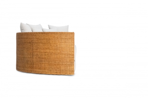 La struttura portante è costituita da un telaio in legno che sorregge due ampie superfici, una interna ed una esterna. La trama ininterrotta con una superficie così ampia e pulita mette in risalto l'essenza dell'artigianalità nella sua forma più essenziale e pura. Il rattan può anche essere tinto in vari colori.
