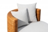La struttura portante è costituita da un telaio in legno che sorregge due ampie superfici, una interna ed una esterna. La trama ininterrotta con una superficie così ampia e pulita mette in risalto l'essenza dell'artigianalità nella sua forma più essenziale e pura. Il rattan può anche essere tinto in vari colori.