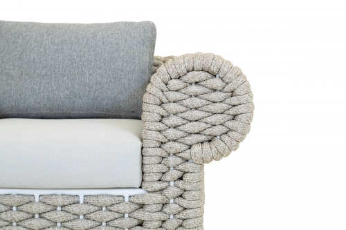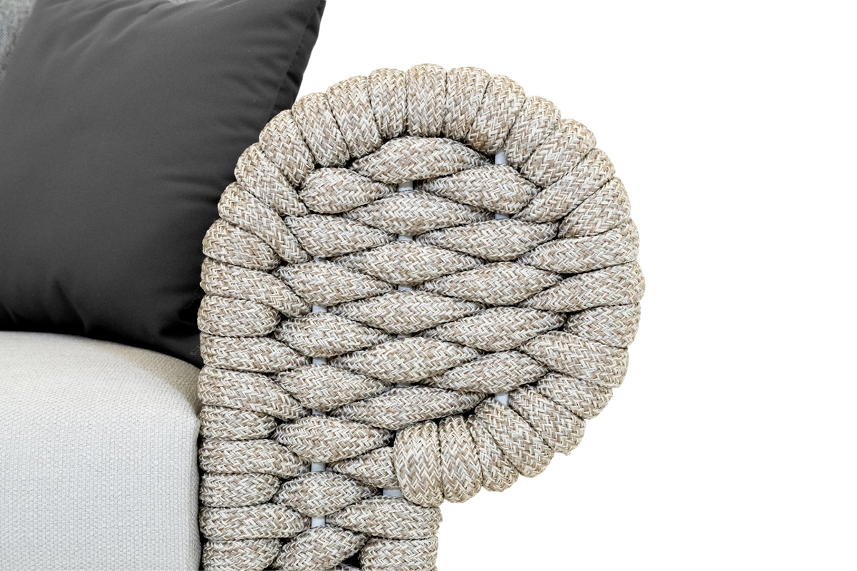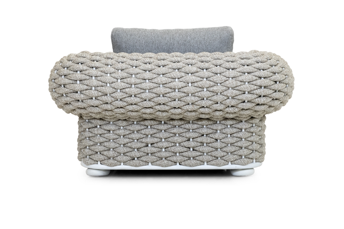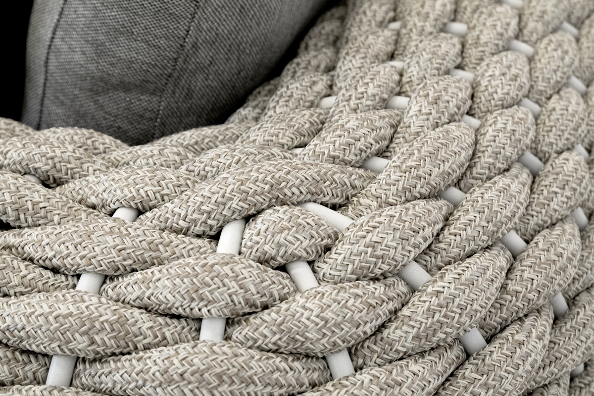 La poltrona Milo prende ispirazione da una collezione iconica della nostra storia, che è stata ridisegnata e aggiornata con linee contemporanee e spesse da 30mm, la nostra ultima aggiunta al repertorio degli intrecci in corda.