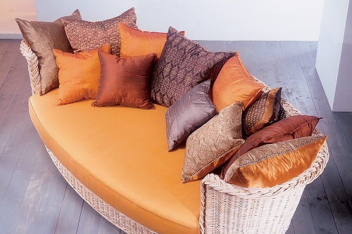 Cuscini in poliuretano espanso, sfoderabili, rivestiti con un tessuto di categoria base color ecrù, oppure di altra categoria con colori e fantasie selezionabili alla voce "stoffe".