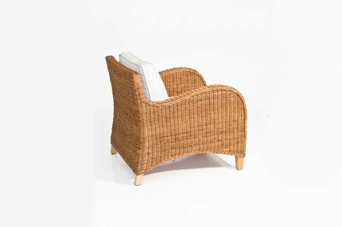 Poltrona in Rattan con telaio in legno, intrecciato in midollino o giunchino da 3 mm. Finitura trasparente opaca