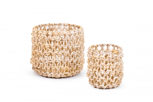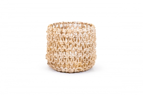 PORTATUTTO & ACCESSORI PER LA TAVOLA SHOP 150 - CESTO RCEST150 Cesto in banano intrecciato a mano. Ricamo e frange con cordoncino bianco Aggiungi al carrello