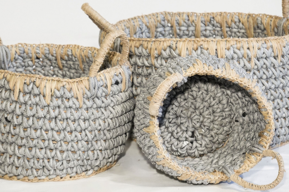 PORTATUTTO & ACCESSORI PER LA TAVOLA SHOP 147 - CESTO RCEST147 58,00 € Cesto in banano attorcigliato, rivestito esternamente con decori in cotone naturale, eseguiti interamente a mano. Aggiungi al carrello