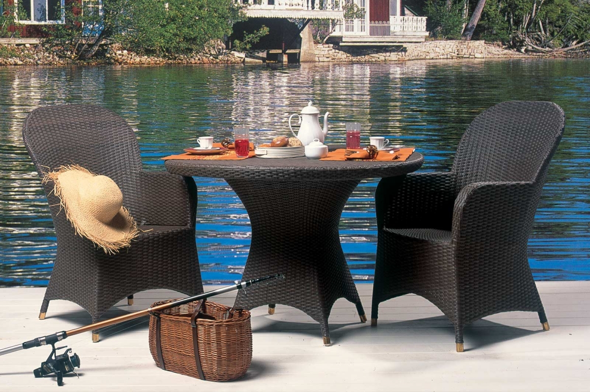 Questo tavolo da pranzo per esterni è interamente intrecciato a mano da artigiani esperti.