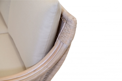 Il salotto in midollino Present ha il telaio in rattan, intrecciato in midollino naturale da 3mm. Finitura trasparente.