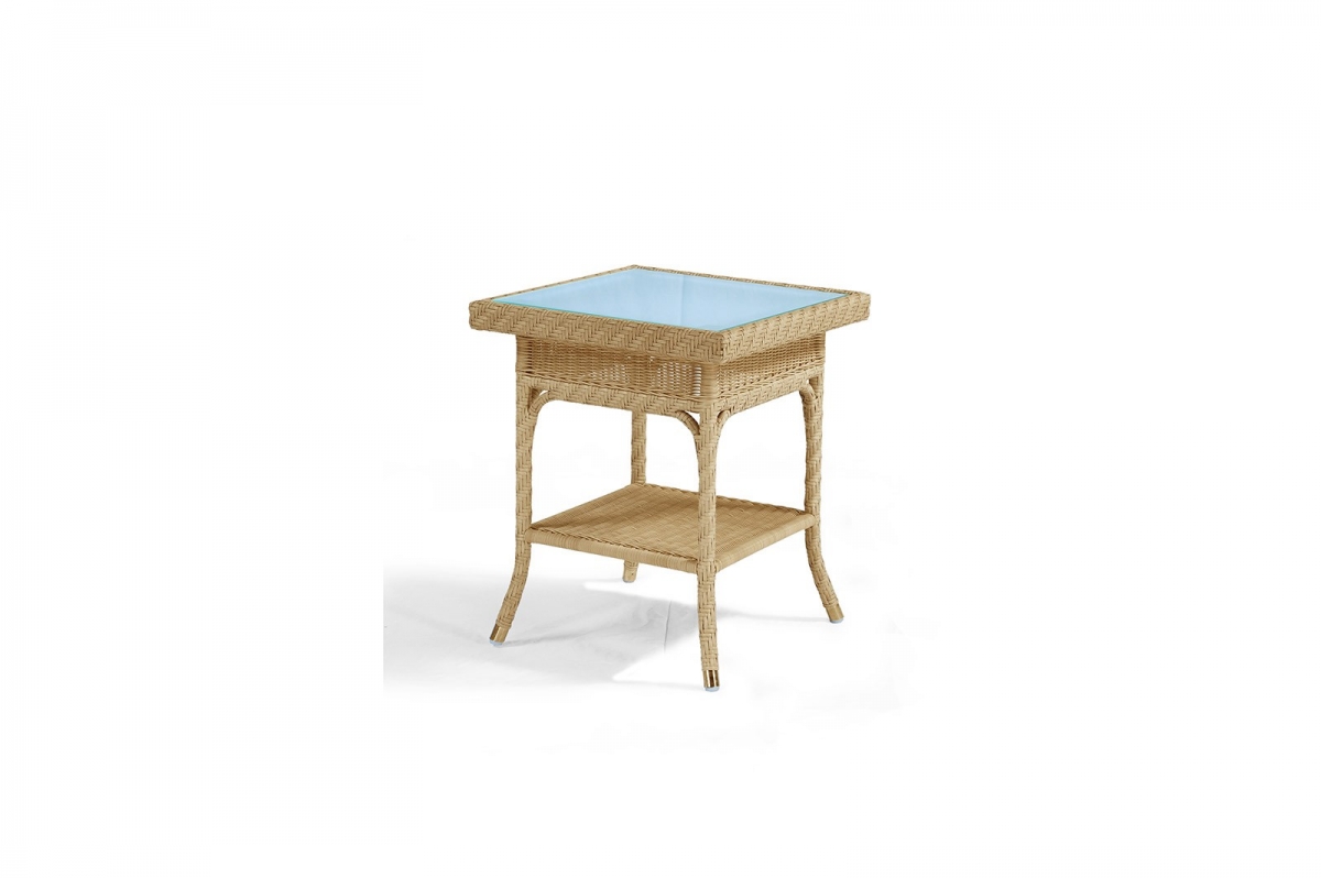 - Tavolino interamente intrecciato a mano da maestri artigiani; top in vetro