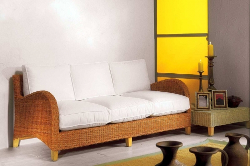 Onda Onda - Divano 3 posti - rattan RONDA.030.040 Divano in Rattan con telaio in legno, intrecciato in midollino o giunchino da 3 mm. Finitura trasparente opacaCuscini in poliuretano espanso, sfoderabili, rivestiti con un tessuto di categoria base color ecrù, oppure di altra categoria con colori e fantasie selezionabili alla voce "stoffe"Realizziamo questo articolo anche su misura e con varie tipologie... View