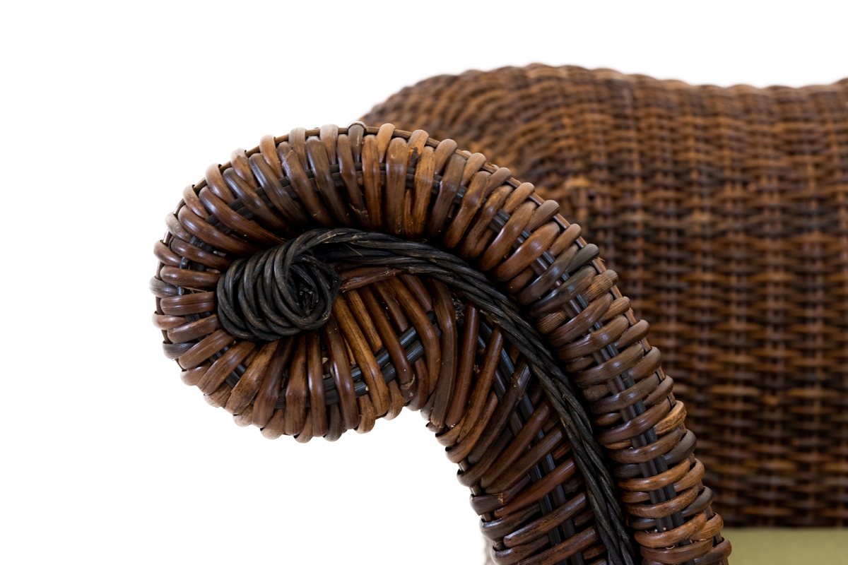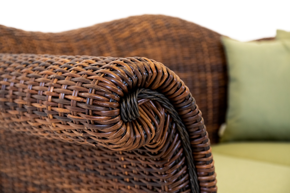 I pezzi che compongono la collezione Mendelssohn hanno un telaio in legno rivestito in rattan naturale interamente intrecciato a mano da esperti Maestri Artigiani.