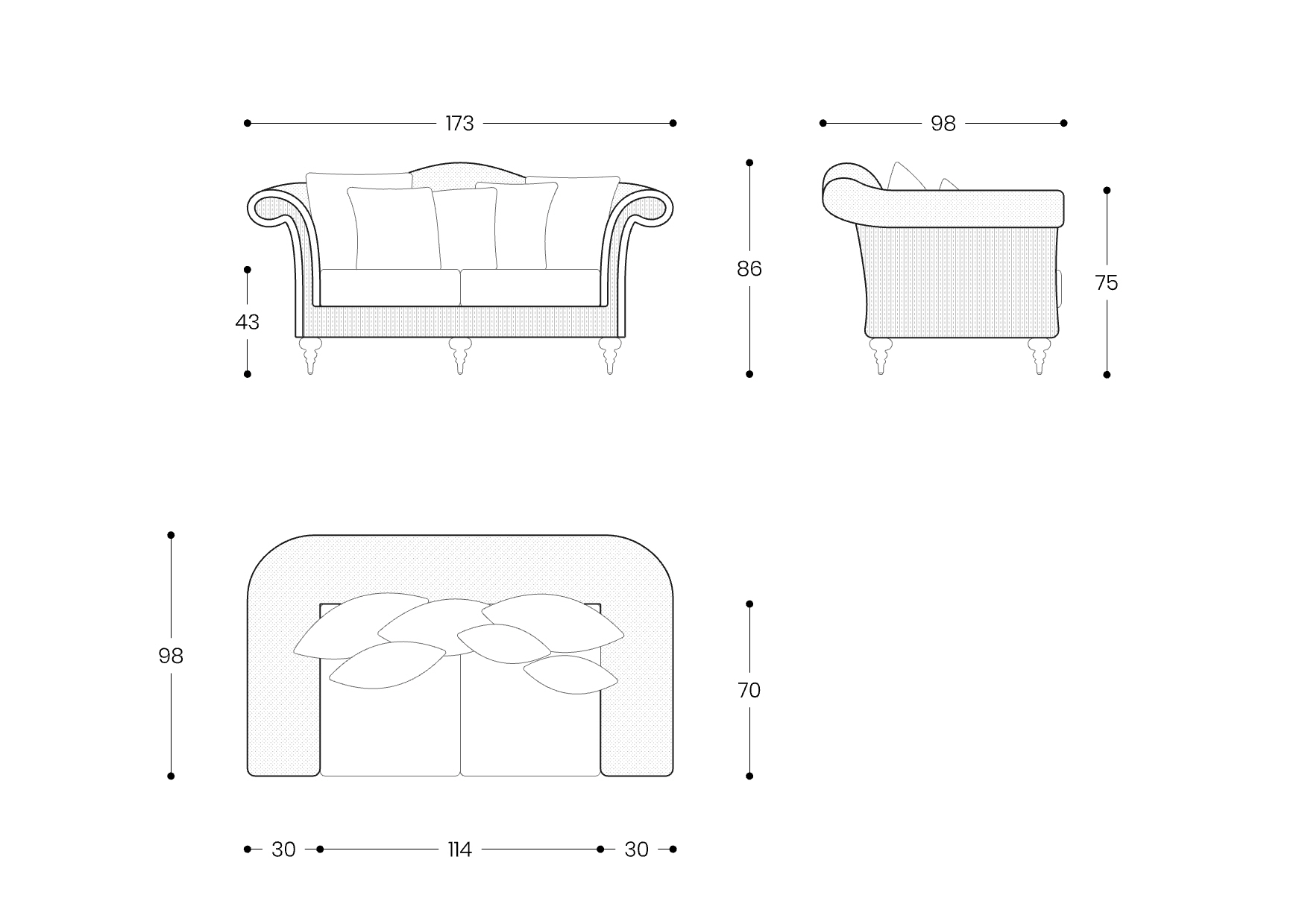 La cuscineria è rivestita con un tessuto facilmente sfoderabile e lavabile, colori e fantasie visionabili alla voce "Tessuti".