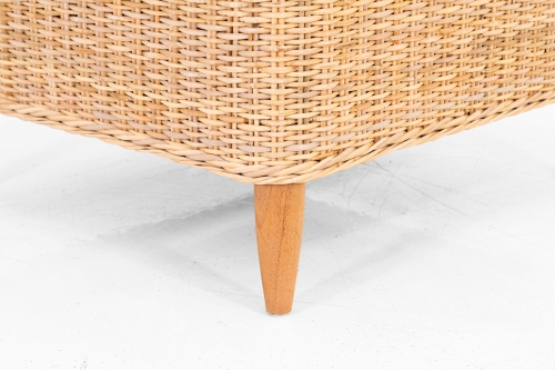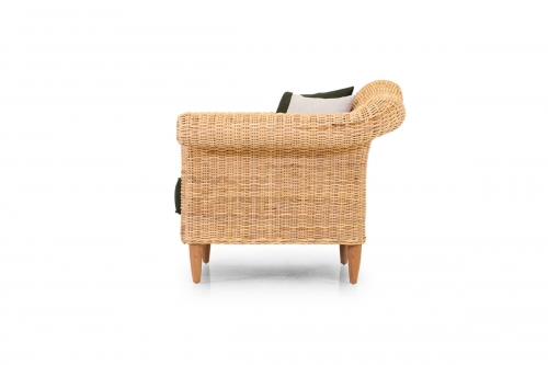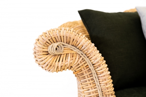 I pezzi che compongono la collezione Mendelssohn hanno un telaio in legno rivestito in rattan naturale interamente intrecciato a mano da esperti Maestri Artigiani.