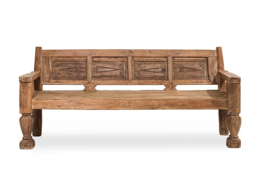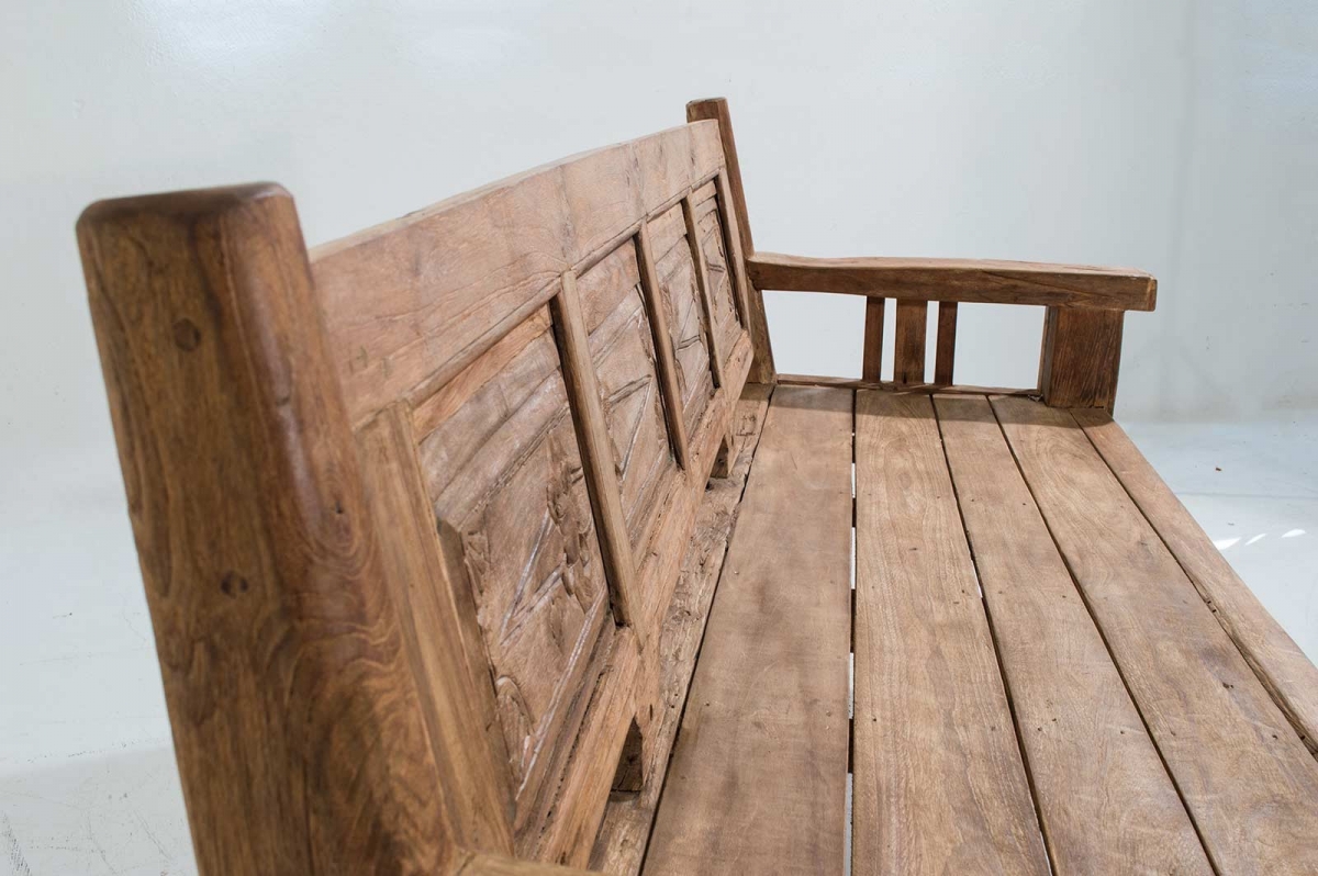 Panca in legno di teak realizzata ed incisa a mano da abili artigiani incisori.