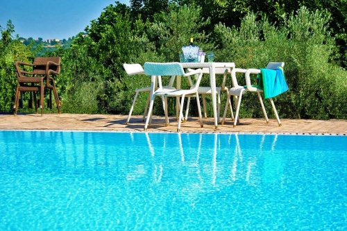 Le sedie ed i tavoli per per esterno LAMPU hanno un telaio in alluminio verniciato con vernice epossidica, intrecciato a mano in fibra sintetica.
