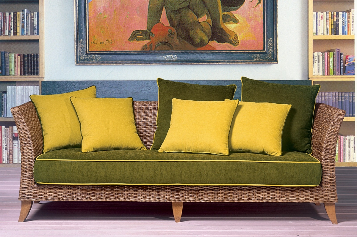 Il salotto in rattan Small Size ha un telaio in legno, intrecciato in croco. Finitura trasparente opaca.
