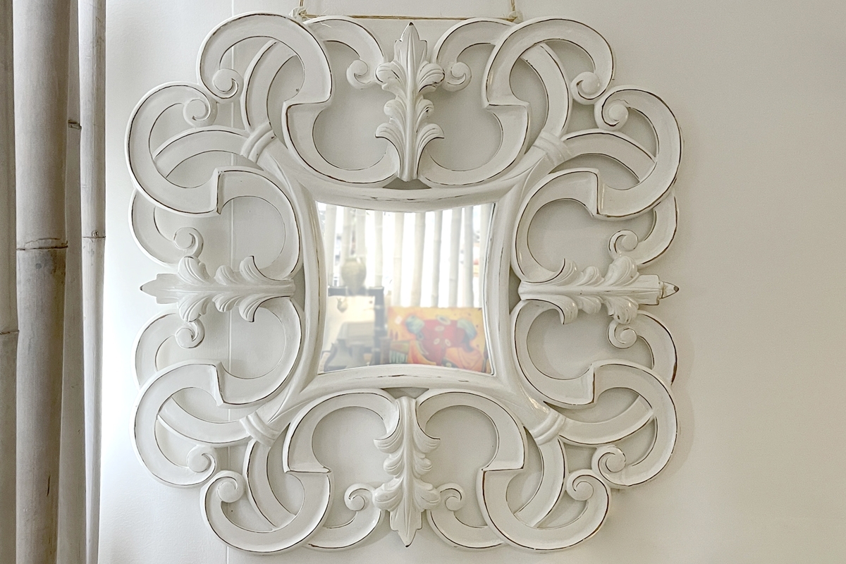 SPECCHI SHOP 2035 - specchio AS2036 Specchio con cornice in Teak intagliata a mano.Finitura: bianco Aggiungi al carrello