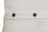 Fodera cuscino in morbido cotone ecrù a righe con particolare apertura posteriore e applicazione di bottoni.