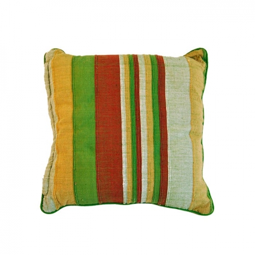 Fodera cuscino in morbido cotone, motivo righe verdi a contrasto.