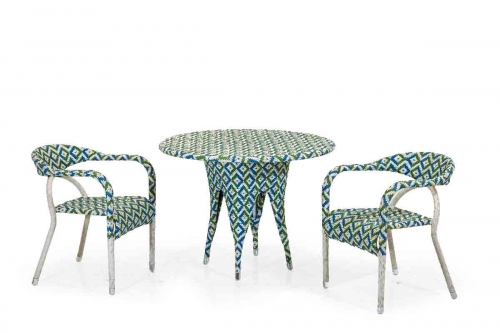 - Tavolo da pranzo interamente intrecciato a mano da maestri artigiani.