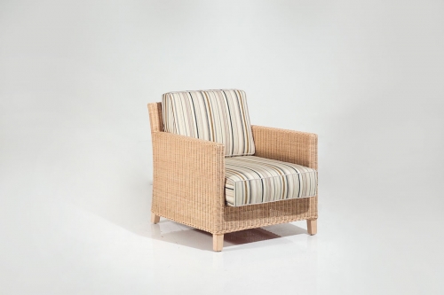 La poltrona in rattan Tiffany ha un telaio in legno, intrecciato in giunchino o midollino naturale da 3 mm con finitura trasparente opaca.