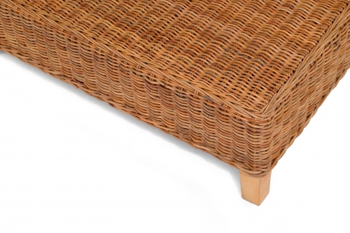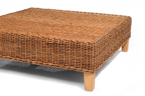 Il tavolo in rattan Tiffany ha un telaio in legno, intrecciato in giunchino naturale da 3 mm con finitura trasparente.